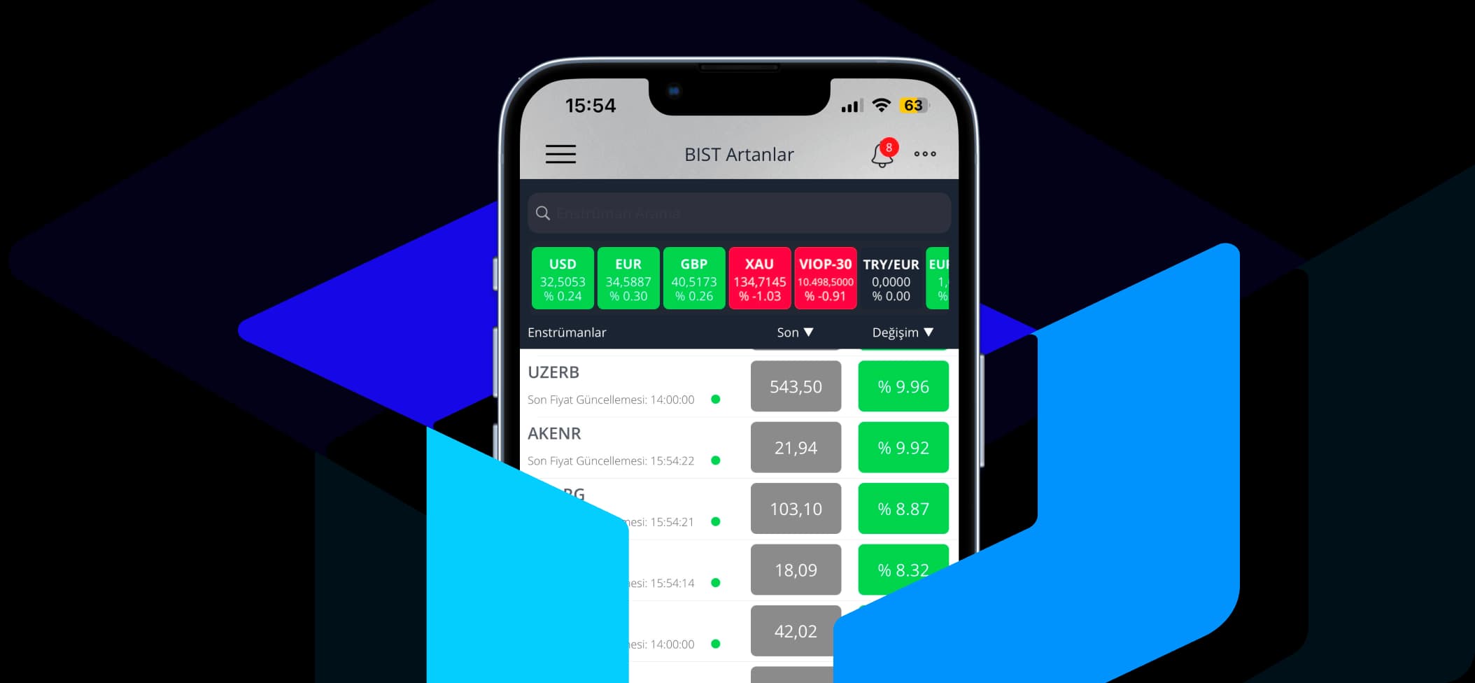 Gün içerisindeki veri akışı piyasa takip ekranımızda. En çok işlem gören hisseler ve pariteler gibi pek çok veriyi takip ederek yatırımlarınıza yön verin.